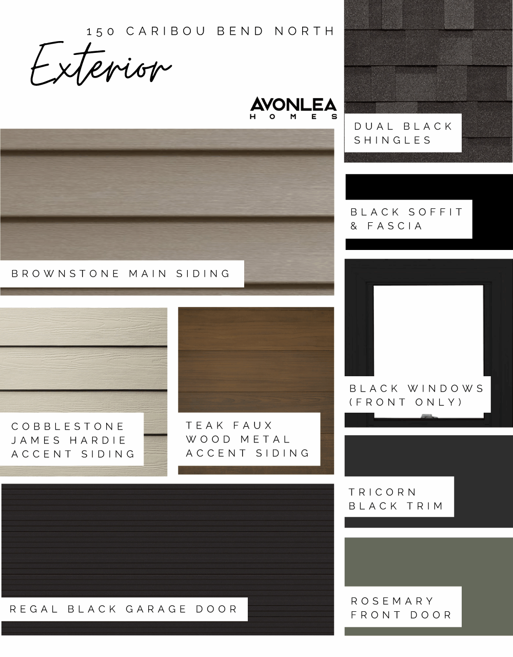 ● Upgraded black garage door and black exterior windows on front elevation