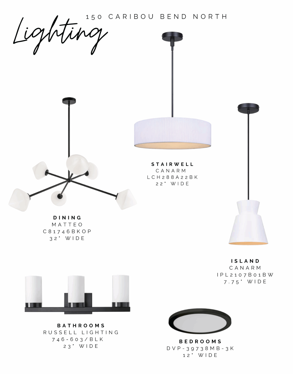 ● Matte black, designer-curated lighting package